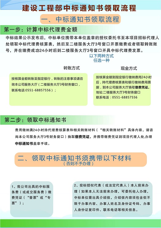 請在中標(biāo)(成交)公告發(fā)布期滿后聯(lián)系本項目招標(biāo)代理人,咨詢是否可以領(lǐng)取中標(biāo)通知書。(劉工、夏工、符工、唐工、徐工、余工、汪工:0551-68825072,0551-68838796)