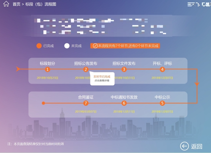 3、 招標(biāo)人查詢可選擇輸入賬號(hào)密碼(同申報(bào)系統(tǒng)的賬號(hào)密碼)或者插入CA鎖,招標(biāo)人查詢可查詢本單位招標(biāo)的詳細(xì)信息和當(dāng)前環(huán)節(jié),包括每個(gè)環(huán)節(jié)的時(shí)間節(jié)點(diǎn),點(diǎn)擊每個(gè)節(jié)點(diǎn)的詳細(xì)信息可分別顯示標(biāo)段信息、招標(biāo)公告內(nèi)容、招標(biāo)文件信息、中標(biāo)公示內(nèi)容、中標(biāo)通知書信息和合同備案信息,還可導(dǎo)出項(xiàng)目明細(xì)列表。
